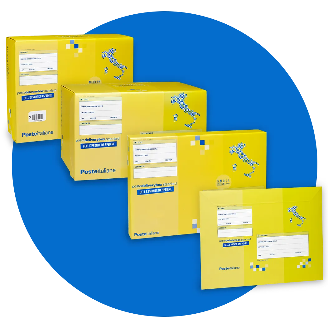 Messaggio Pubblicitario con finalità promozionale. Poste Deliverybox Standard è il servizio di Poste Italiane S.p.A., con sede in Roma Viale Europa n. 190, per la spedizione e recapito di invii a firma fino a 5 kg predisposti dal Cliente tramite confezioni preaffrancate. I tempi indicativi di consegna delle spedizioni con Poste Deliverybox Standard sono di 4 giorni lavorativi – se spediti entro lo stesso Comune – ovvero di 6 giorni lavorativi nei restanti casi ed entro le zone servite del territorio nazionale (esclusi sabato e festivi). La spedizione della confezione preaffrancata deve avvenire entro un anno dalla data di acquisto. Per le condizioni economiche e contrattuali, le caratteristiche, le limitazioni del servizio anche con riferimento alle destinazioni servite e le modalità di eventuali reclami si rimanda alla documentazione disponibile su questo sito. Per info, assistenza e per richiedere il ritiro a domicilio puoi chiamare da rete fissa il numero verde gratuito 803 160 e da rete fissa e mobile il numero +39 06 4526 3160 (dall’Italia e dall’estero), secondo i costi dell’operatore telefonico dal quale si effettua la chiamata, attivi dal lunedì al sabato dalle ore 8.00 alle ore 20.00, esclusi i festivi.